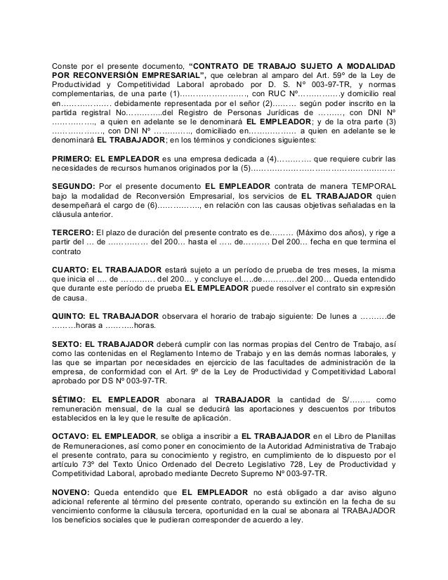 Modelo de contrato de trabajo a prueba por 3 meses por objeto del contrato de trabajo debe entenderse la sustancia económica bienes y utilidades que caen bajo la voluntad de las partes. Por el presente contrato y al amparo de la legislación laboral vigente el empleador contrata los servicios personales de el trabajador los mismos que se desarrollarán bajo subordinación a cambio de la remuneración convenida en la cláusula sexta. Cuál sería la fecha de finalización 7 o el 6 agosto. Extincin de la relacion laboral.
