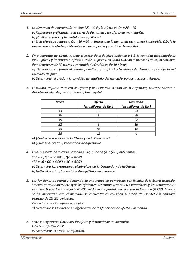 Microeconomia Ejercicios Y Problemas Resueltos Demanda Oferta