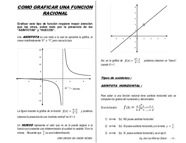 Una función racional es una ecuación que tiene la forma y n x d x donde n y d son polinomios tratar de dibujar una gráfica exacta de una de ellas a mano conlleva un exhaustivo repaso de muchos de los temas más importantes de la preparatoria desde álgebra básica hasta cálculo diferencial.
